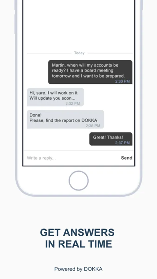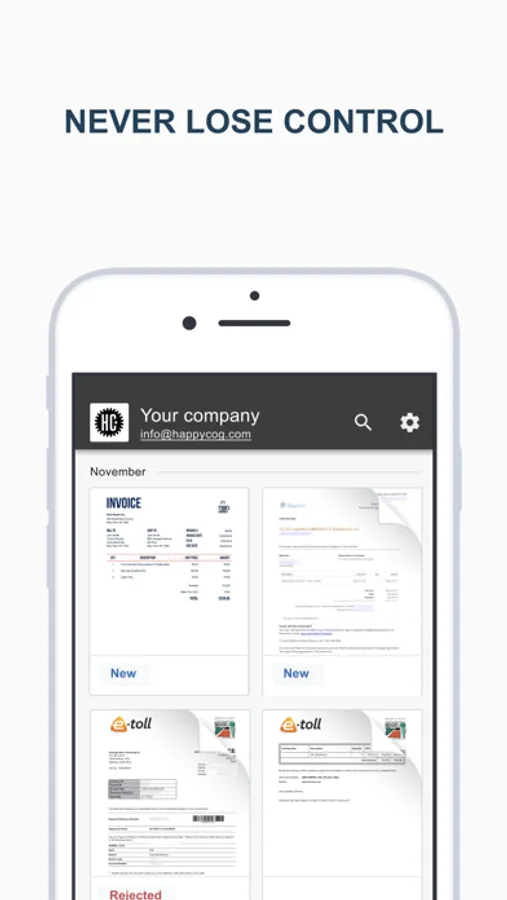 Automate your manual exchange process of accounting documents with your bookkeeper. Send accounting documents to an automatic OCR system with advance AI capabilities. In-app chat to clarify document related issues, pinned to the document itself.