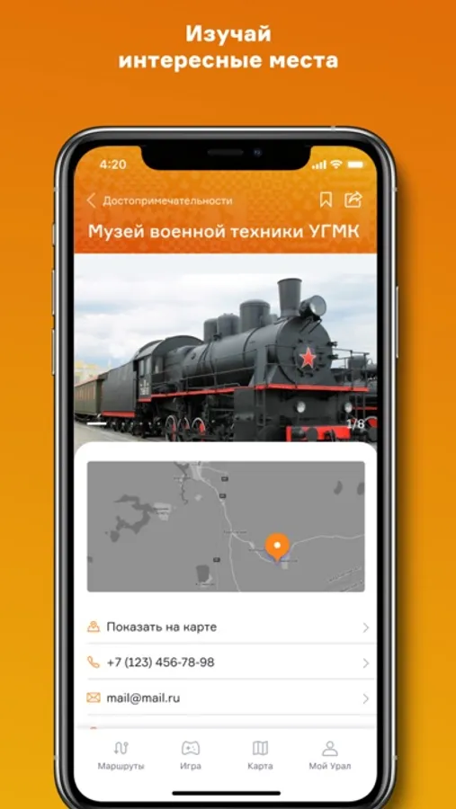 - Интерактивная карта, которая покажет дорогу до достопримечательности или проведет по выбранному маршруту;