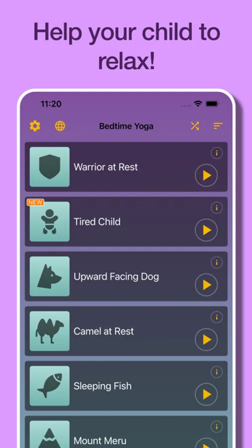 Created for kids! The app will get your child in a state of inner peace and tranquility, thus helping him to go to night sleep without any protests! We have selected the poses able to relax body and mind and present you with a feeling of serenity much-needed in the evening.