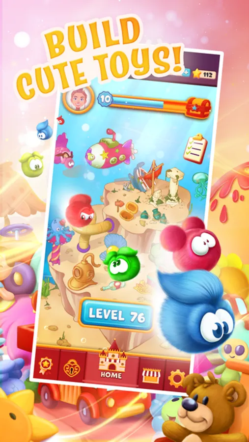 Make super combos and blast the obstacles, pass the challenging match-3 levels, build magnificent toys. Travel through fantastic realms, complete the wishlists of children, level up your character and pursue this fun adventure.