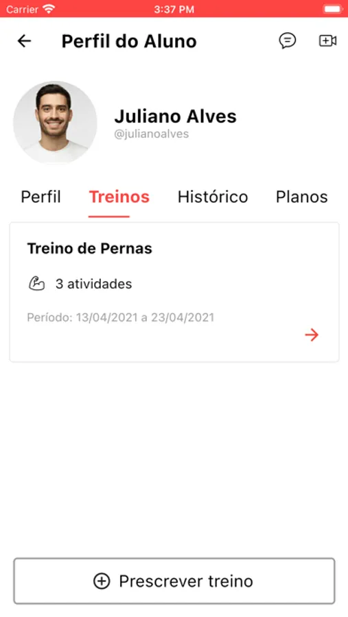 - Através da ferramenta de videochamada, você pode orientar e verificar se seu aluno está executando o exercício da forma certa e com a postura correta.