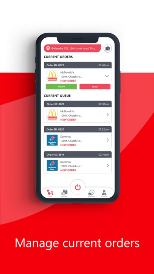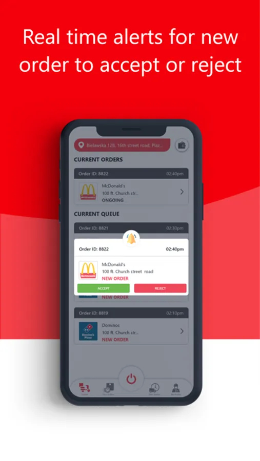 Real-time alerts allow the delivery person to know when a new order is available to accept/reject