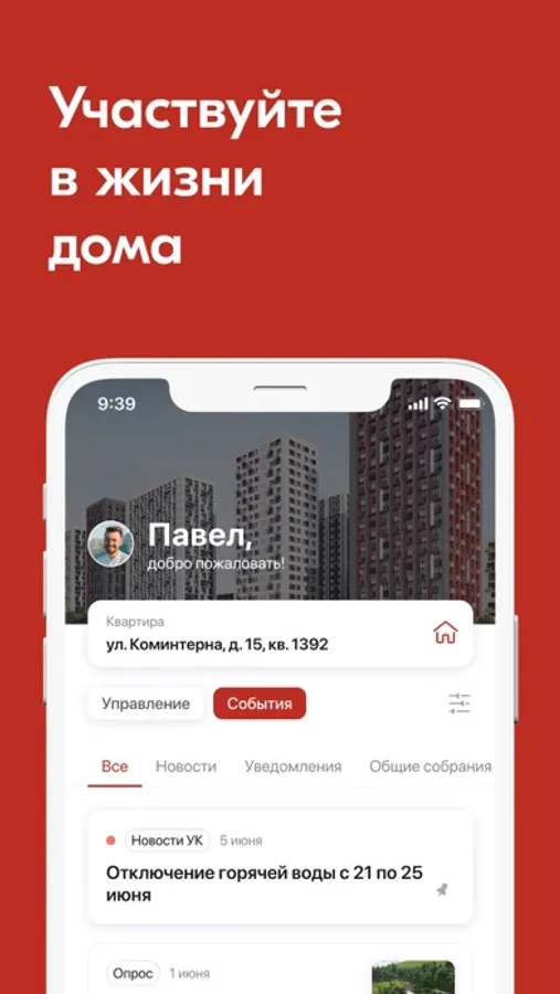 - Узнавайте первыми о плановых работах, акциях и новостях вашей управляющей организации