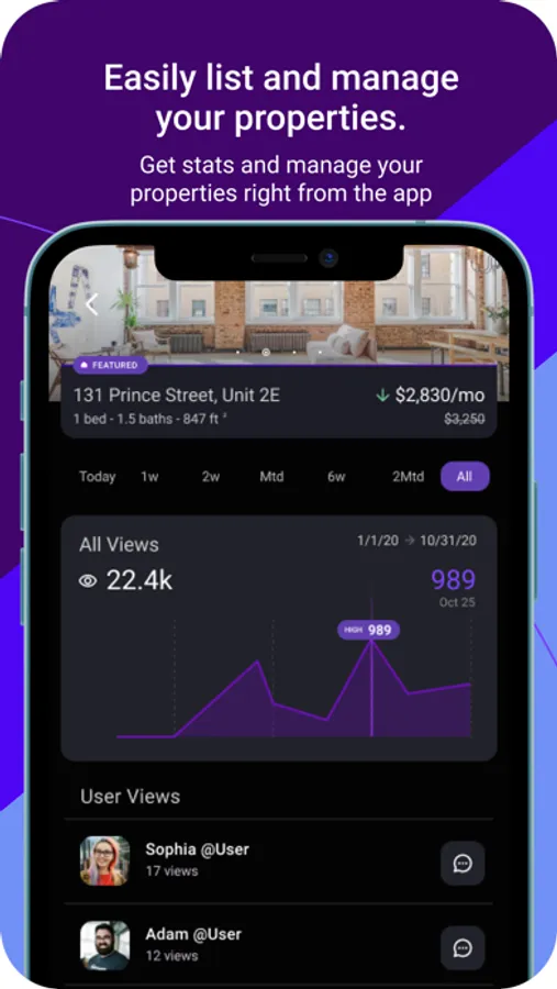 - Dashboard. Once you list your property, you'll get next level comprehensive analytics on the listing views as well as ability to proactively reach your prospects.