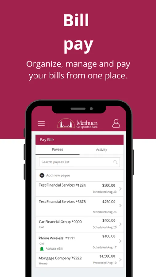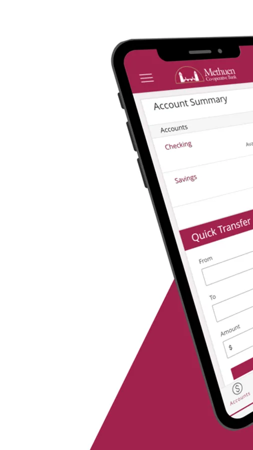 [+] Hamburger menu with all of the transactional tools needed to stay on top of your finances