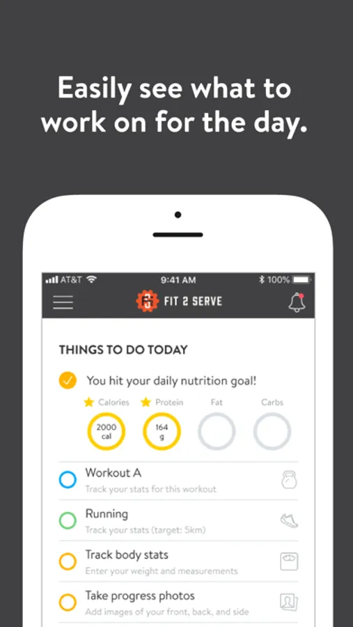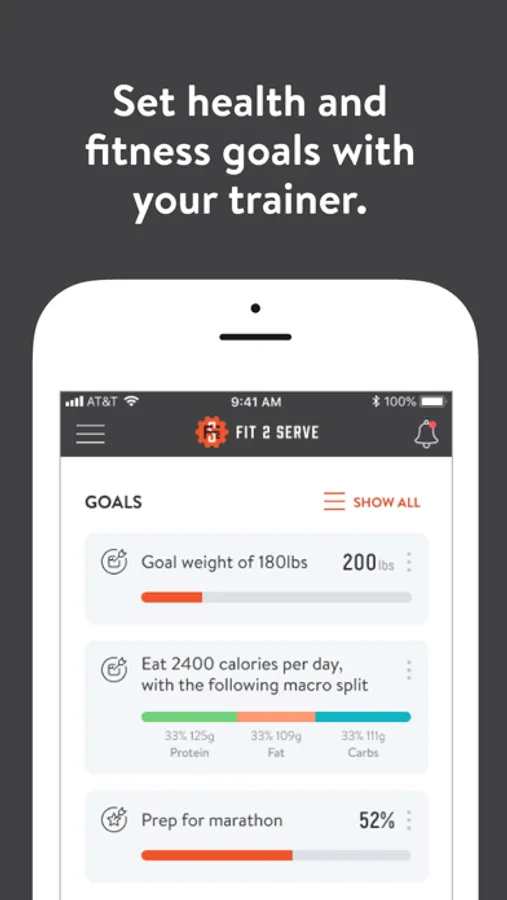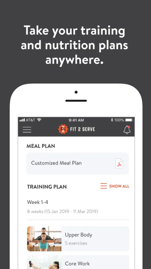 With the Fit 2 Serve Coaching App, you can start tracking your workouts and meals, measuring results, and achieving your fitness goals, all with the help of your personal trainer.
