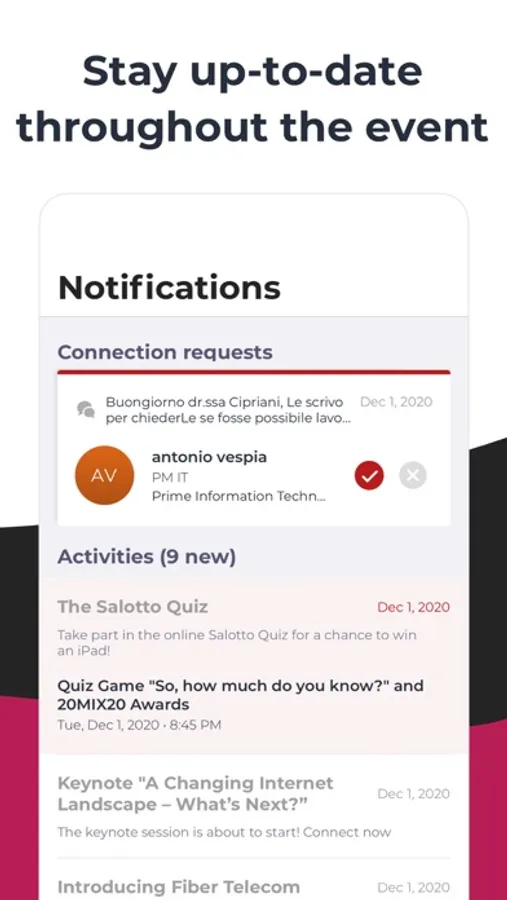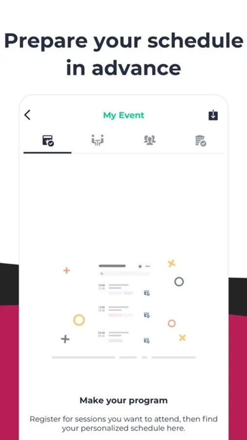 Use the app to check the agenda, add new contacts, follow the sessions, schedule in person and online meetings.