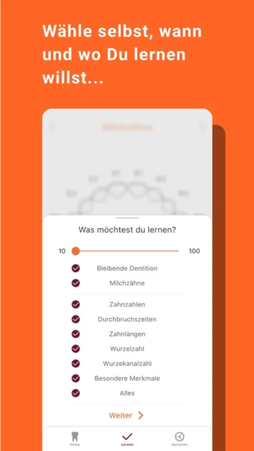 Teste Dich selbst im Zahniquiz und wähle sogar aus, welche Themen abgefragt werden sollen.