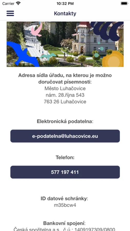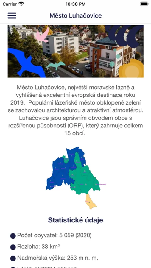 Díky aplikaci Město Luhačovice ve svém mobilu na jednom místě snadno a rychle najdete vše o městě, aktuality z radnice, nebo například kulturní tipy a nejnovější zprávy. S pomocí aplikace budete automaticky upozorňováni na aktuální změny v dopravě nebo informace o případných mimořádných událostech jako jsou povodně nebo požár a jiné krizové situace. Díky aplikaci občané i turisté snadno zjistí, kam přesně se obrátit, když si potřebují vyřídit důležitou úřední záležitost, ale také, jaké jsou v Luhačovicích aktuální možnosti trávení volného času.