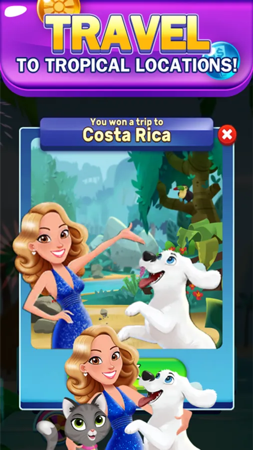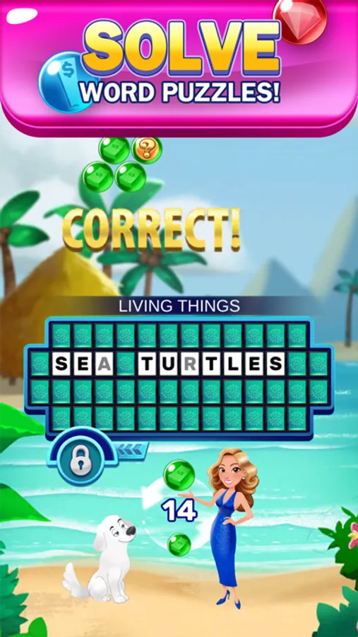 Pop the bubbles and play word games with Vanna White as your host and her favorite furry friends, Stella and Thunder. Tackle word puzzles and escape to exotic getaways as you spin, pop, and solve word puzzles written by the show's very own writers.