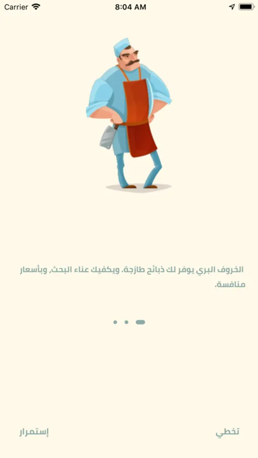 هو تطبيق وسيط بين المستخدمين واداره التطبيق مباشرة ، حيث يقوم المستخدمين بتحديد الطلبات اللتى يريدونها من الذبائح وتحديد الكمية والتفاصيل المطلوبه، ثم يقوم المستخدم بادخال البيانات الخاصه به وتحديد طريقة الدفع وارسال الطلب الى الاداره ، الى ان يتم الموافقه علي الطلب وانهاؤه عن طريق لوحة التحكم الخاصة بالتطبيق.