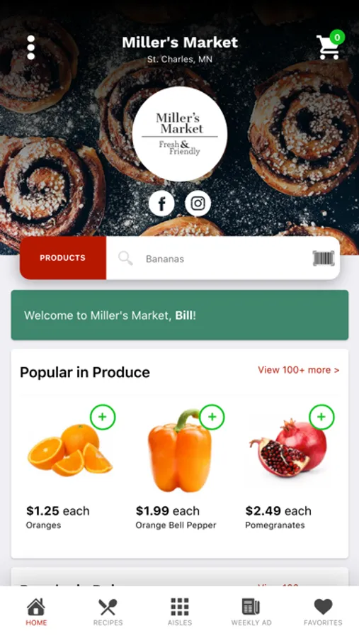 Order your groceries from Miller's Market on the go on your mobile device or from your iPad on your couch. Our award-winning grocery app makes grocery shopping a breeze with quick access to our weekly circular, an easy-to-use product search, detailed product details and labeling, tasty recipes, and family meal planning tools. What could be better than that?
