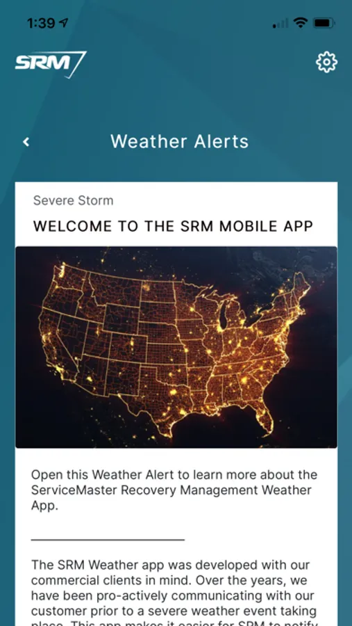 • SEVERE WEATHER NOTIFICATIONS – SRM monitors weather across the country and cross references our weather data with your property locations. When one of your property locations is at risk, we will push a weather notification informing you of the risk so you can be better prepared.