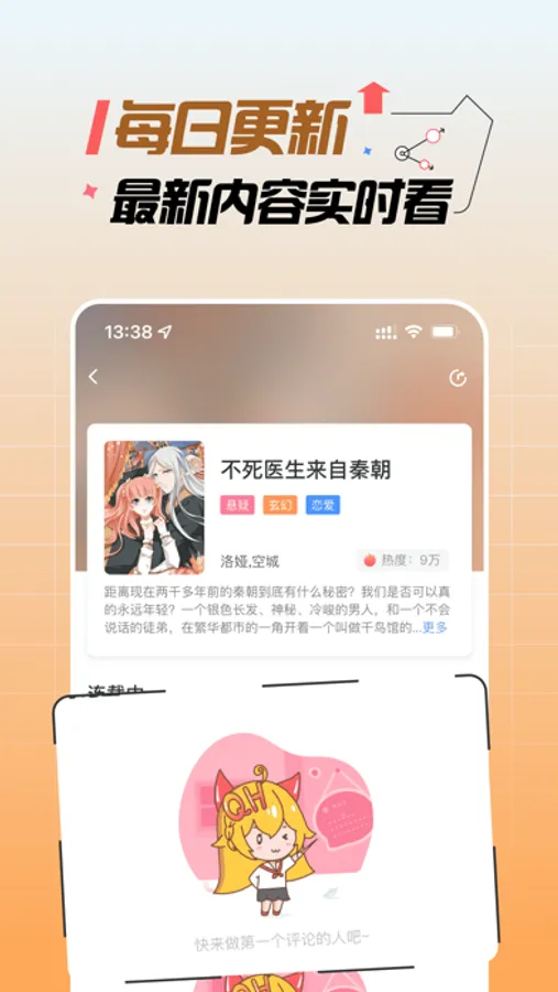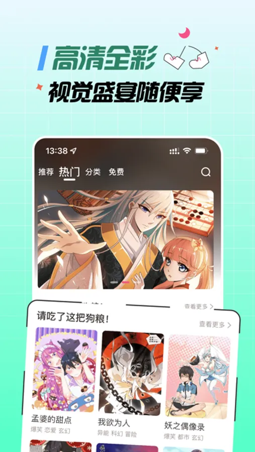 精彩漫画APP强势来袭,二次元小伙伴集结圣地;体验超好的国漫,韩漫,超快的更新上架速度,精彩热门漫画让你停不下来;超高清的全彩画面,让你体验到精美的视觉享受;超舒服的条漫排版,让你即使拥挤在地铁中,也能轻松快速阅读;