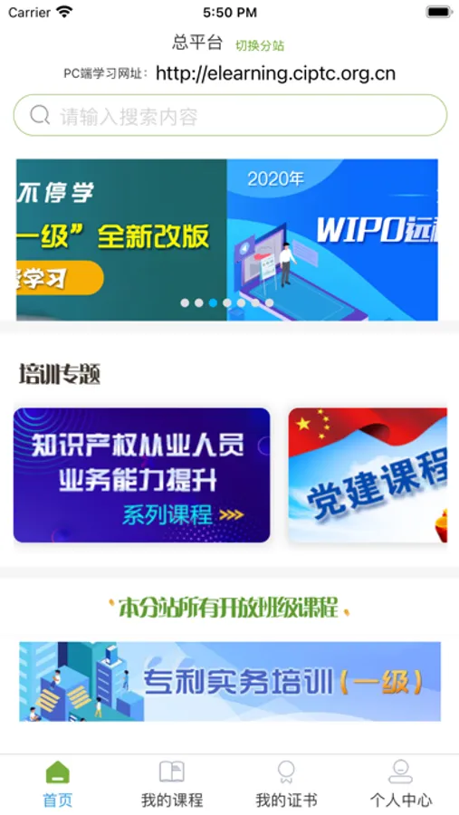 中国知识产权远程教育为学员提供公益性培训学习,可以自由选择开放班级参与学习知识产权相关的课程,通过在线学习,记录学习过程,形成学习成绩。
