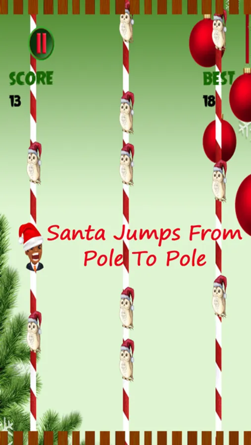 Yes, Santa is awesome! Score high and you can choose from among four different Santas. This may look easy, but when Santa jumps, don’t land on an owl sliding along another pole. Hop too high or too low: game over.