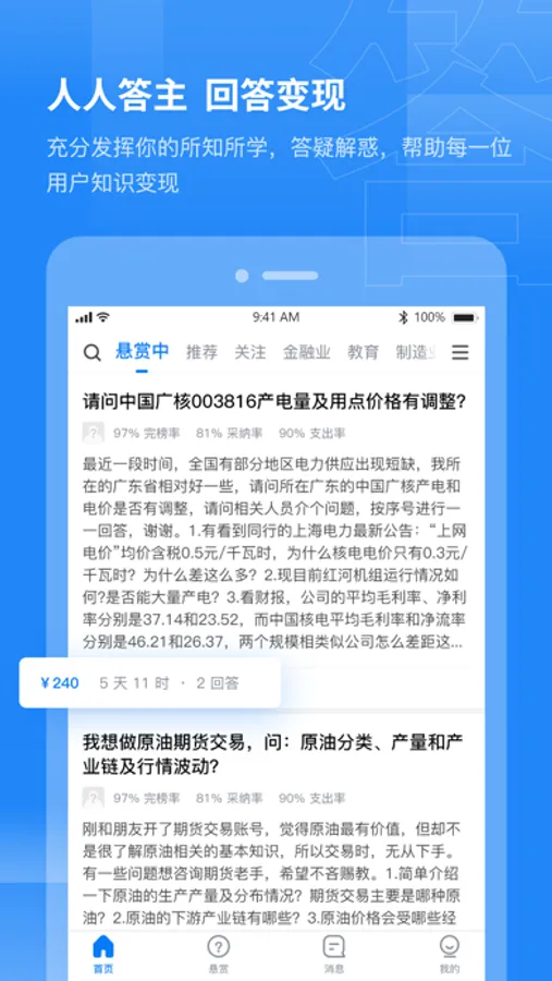 覆盖超过三千个专业垂直领域,悬赏直达每一位用户,网上搜不到,觅答问得到。
