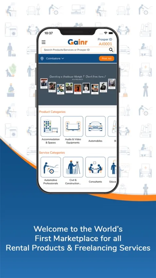our venture "Gainr" which is going to be the 1st ever C2C platform in the world on Rental Products and Freelancing Services to meet all temporary needs of the people.