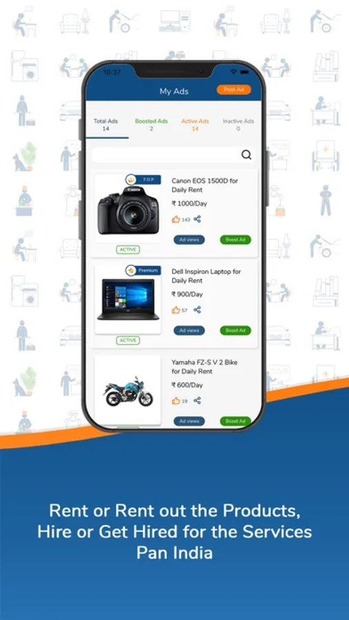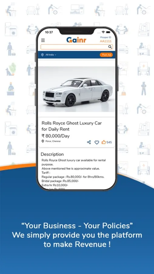 Your Business, Your policies, and Your Revenue. We will never interfere and you are free to get paid directly by your clients either by cash or other mediums whatever is convenient to you. This Platform is completely free to post any kind of short-time deals on all Rental Products and Freelancing Services.