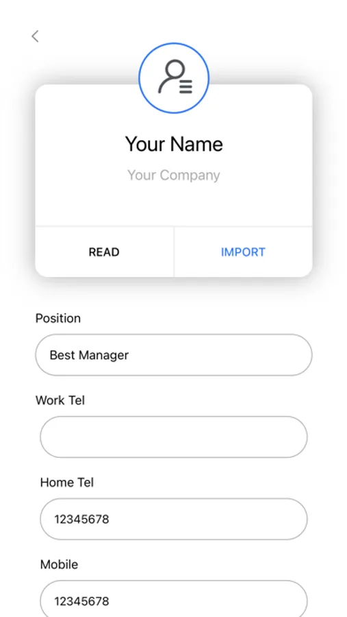 With this app, you can add, update, edit & enable what you would like to share with your contactless card anytime, anywhere.