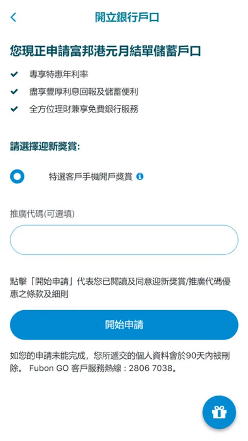 Download Fubon GO and select "Open a bank account" to start the experience.