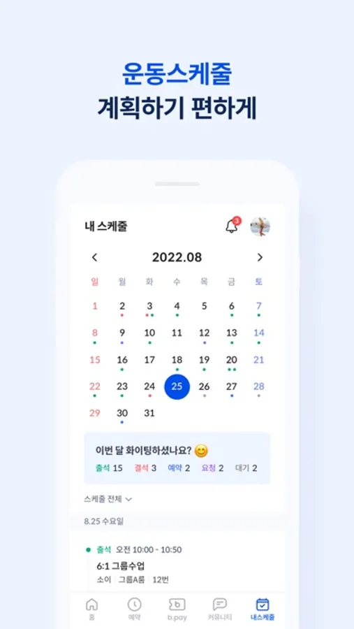 [모바일에서 쉽게 보고 관리하는 스케줄과 이용권]