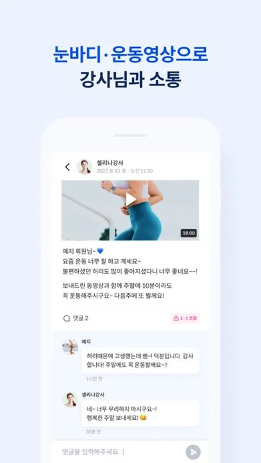 - 커뮤니티를 통해 강사의 운동 비법까지 공유 가능하며 식단 관리 까지. 즐거운 운동 시간을 선사합니다.