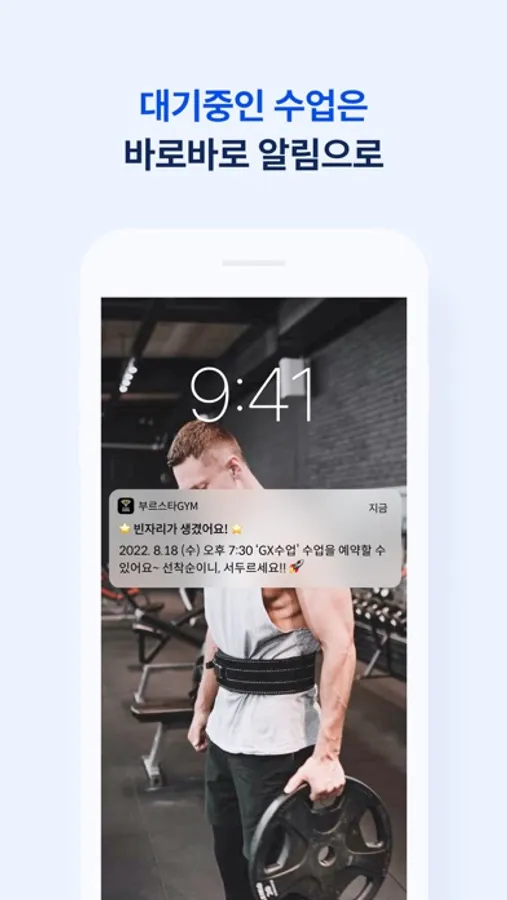 언제 어디서나 스마트폰에서 원하는 시간에 수업을 간편하게 예약하는 부르스타GYM.