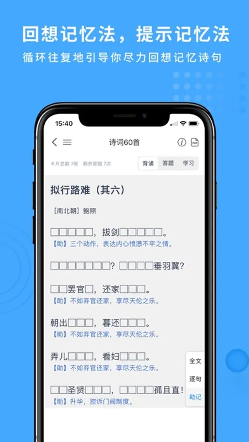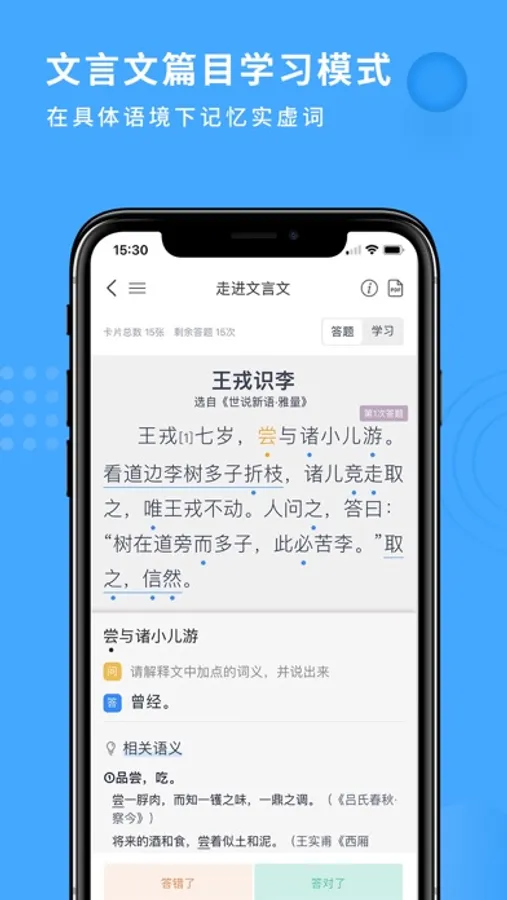 深度文言文,精选经典国学名篇,辅助古诗文的理解和赏析,有助于积累传统文化,辅以科学记忆算法,提高自助学习的效率。通过阅读赏析,促进亲子共读,帮助青少年通过读懂文章,提高文学素养,更好地理解社会和中华文化。