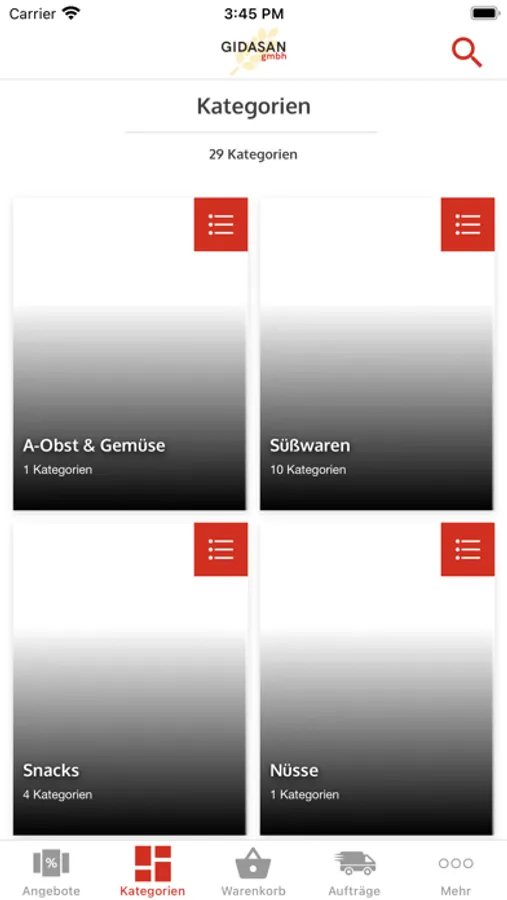 Gidasan GmbH iOS-App bietet Kunden die Möglichkeit, Ihre Aufträge online zu erfassen. Die Kunden können auch Ihre Offene Posten ansehen