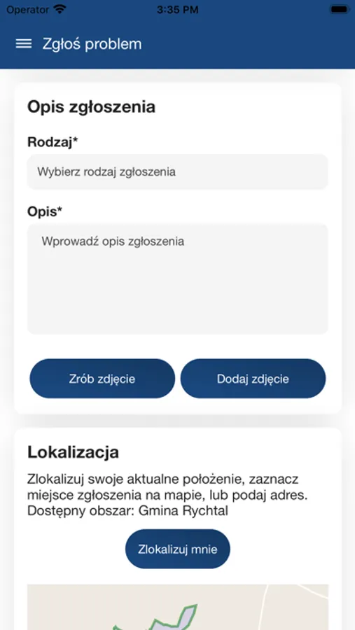 Aplikacja w bardzo prosty sposób pozwala na zgłaszanie różnych problemów czy usterek. Może to być np. ubytki w nawierzchni drogi gminnej, brak oznakowania drogi, uszkodzone barierki, słupki, nieodśnieżony odcinek drogi. Wybierz kategorię zgłoszenia, zrób zdjęcie, naciśnij przycisk lokalizowania i wyślij zgłoszenie.
