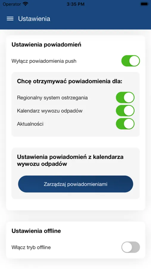 - systemu powiadomień push, abyś mógł otrzymywać ostrzeżenia kryzysowe czy powiadomienia o ważnych aktualnościach
