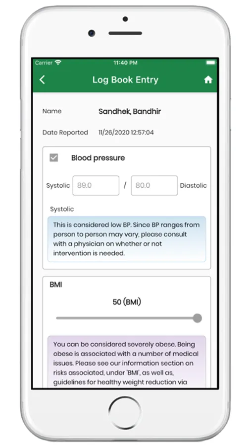 · Logbook to keep record of member parameters with options to set prompts, review entries and get live feedback/advise