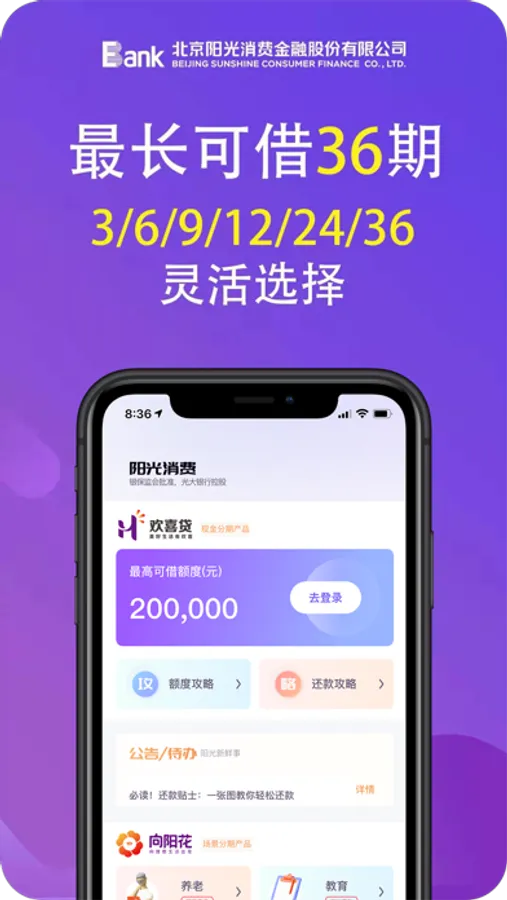 阳光消费App是中国光大银行旗下北京阳光消费金融股份有限公司推出的个人消费信贷分期服务平台,申请人可通过“阳光消费App”全程在线操作,申请最高20万额度的个人消费贷款。