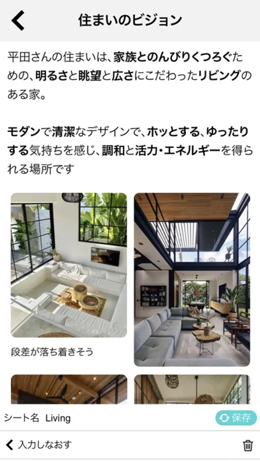 アイデアをアプリで整理する、一家に1冊の家づくりノート。部屋毎・テーマ毎にアイデアをメモしたり、お気に入り写真をスクラップできます。依頼する住宅会社と共有許可すれば、要望をいちいち口で説明する面倒から解放されます。