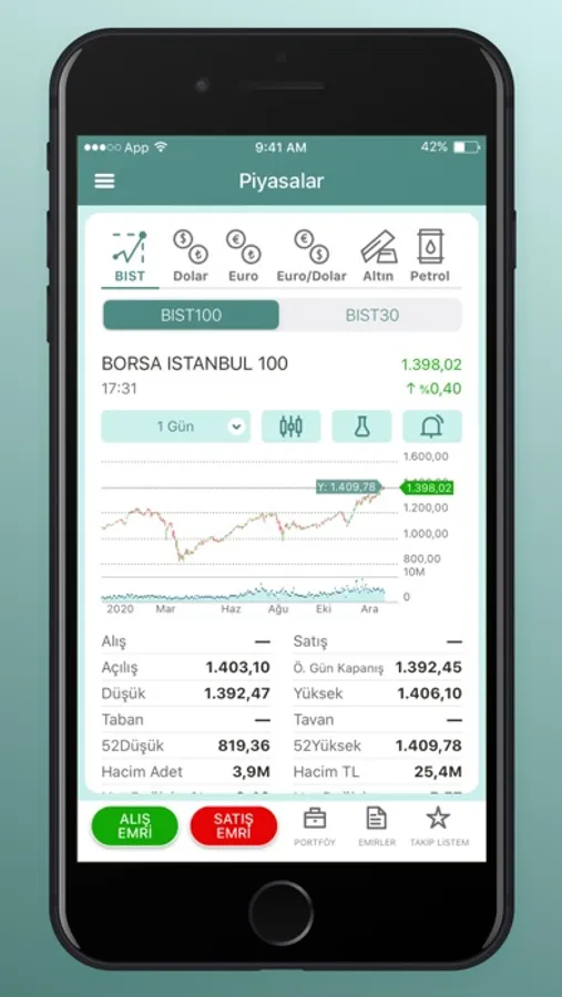 -Other than BIST equities and derivatives, you can reach to BIST Indices , currency pairs, gold prices, oil prices and top markets of World through our application