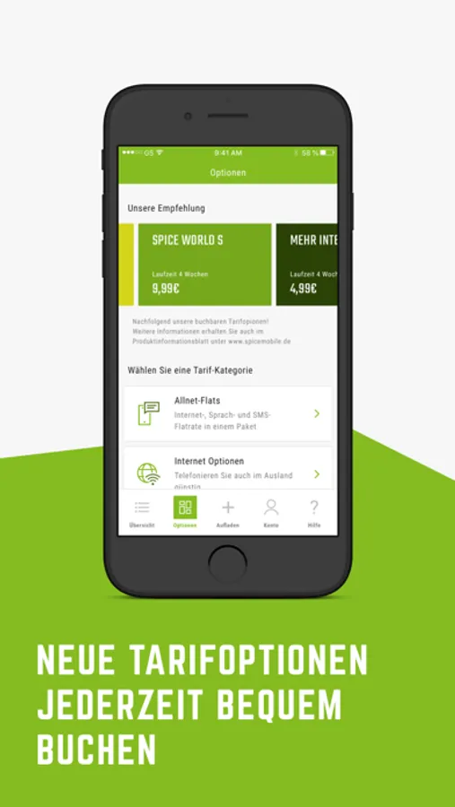 Register for tariff options, top up credit and check included units – simply install the SPICE MOBILE App and you're ready to go!