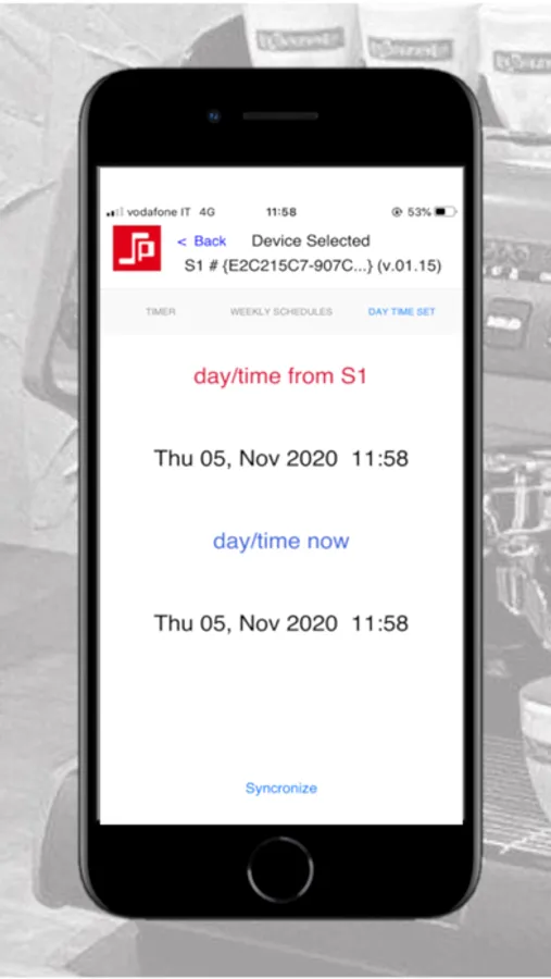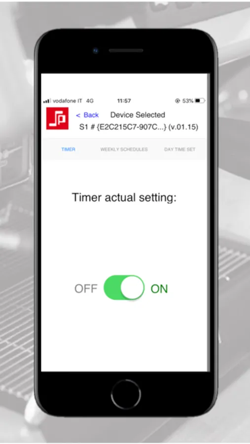 Thanks to the Bluetooth connection between the coffee machine and your smartphone, the APP allows you to set the switching on and off of your coffee machine.