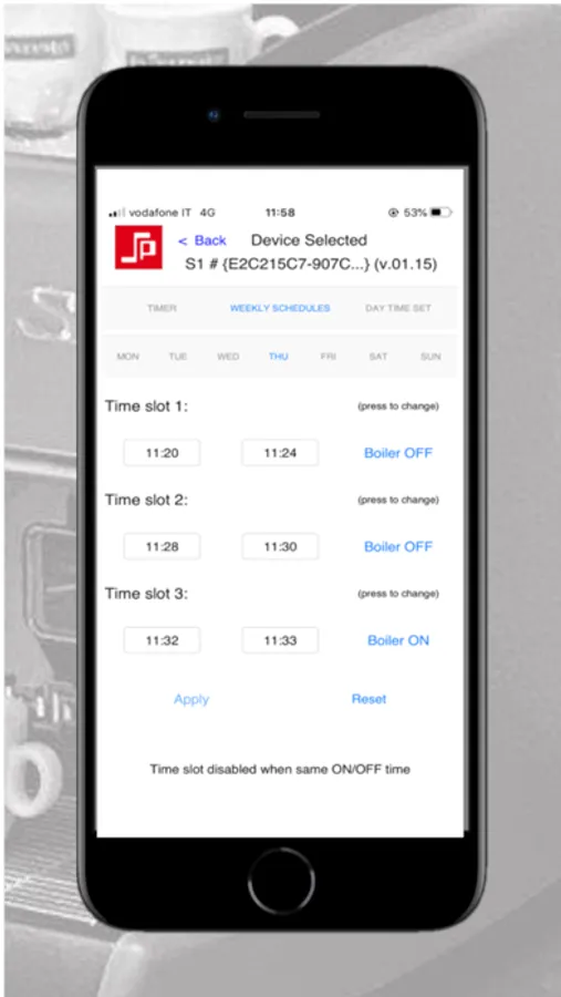 This APP is dedicated to S1 LA SPAZIALE coffee machines (Rossini, Mini Vivaldi, Mini Vivaldi II, Vivaldi and Vivaldi II models) equipped with the new S1 universal control board.