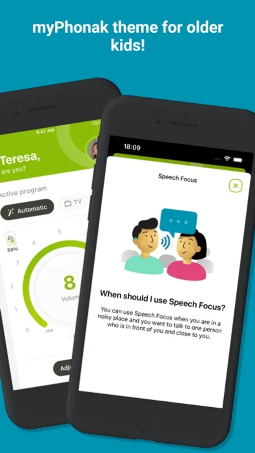 The Remote Control function has been specially designed for children aged 6 years and above (with supervision when needed). It gives your child the ability to adjust the settings on their hearing aids to suit their listening preferences in more challenging environments. The myPhonak Junior app has been precisely designed to empower children in an age-appropriate without sacrificing hearing performance.