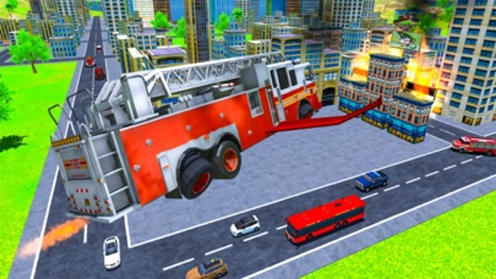 Download Real Flying Fire Truck Robot: Rescue Simulator by GAME TAP to become a fireman in truck simulator and to rescue people from fire.