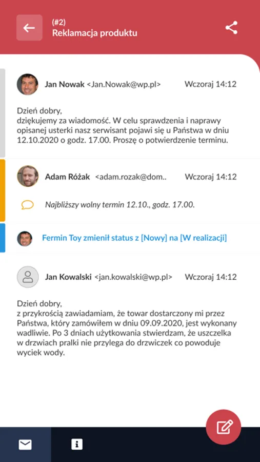 Teraz nawet będąc w drodze możesz odpowiadać na zgłoszenia od klienta. Dodatkowo w wątku korespondencji z klientem dodasz komentarze, co ułatwi ci zapisywanie najważniejszych informacji poza biurem.