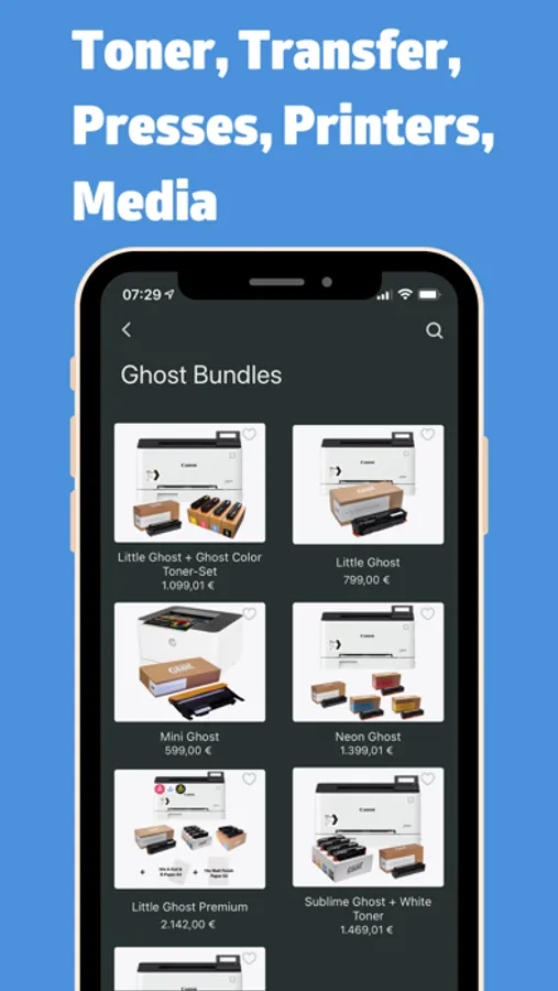 The Ghost App features all our White Toner Cartridges helping you find the right toner for your printer at your fingertips. You can also choose from a wide range of transfer media and heat presses. The Ghost App is the one-stop-shop for your transfer business weather you are new to this indusry or just want to restock on supplies.