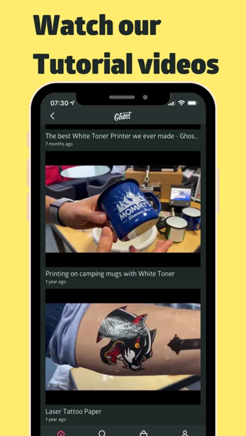 With tons of useful help- and support content the App helps you to navigate in the confusing universe of textile and hard surface decoration. Our follow-along video tutorials help beginners getting it right the first time and provide useful tips and tricks for the more experienced user. Dive into the world of Ghost on your phone, today!