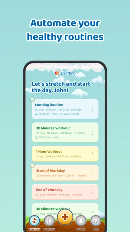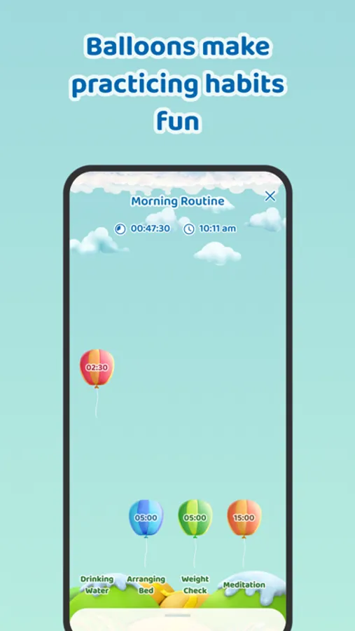 Organization of daily tasks is about routines. Assign execution durations and get notified each time you need to take action. The notification will remind you when the routine needs to be started and the execution timer will assist you in completing the task and stay focused. You can modify the order of doing the tasks, but the balloons will not pop before you complete all the tasks in the routine.