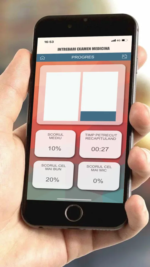 O alta parte intreresantă a acestei aplicaţii este sectiunea de progres, unde utilizatorul poate sa vadă la ce procent din intrebari a raspuns corect.