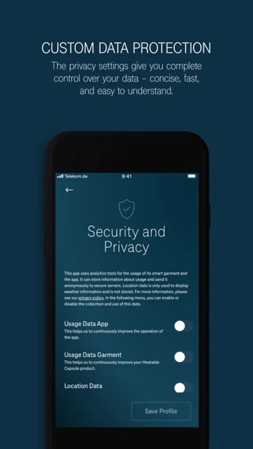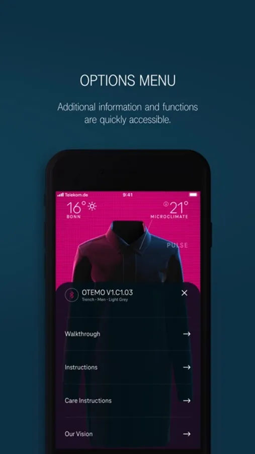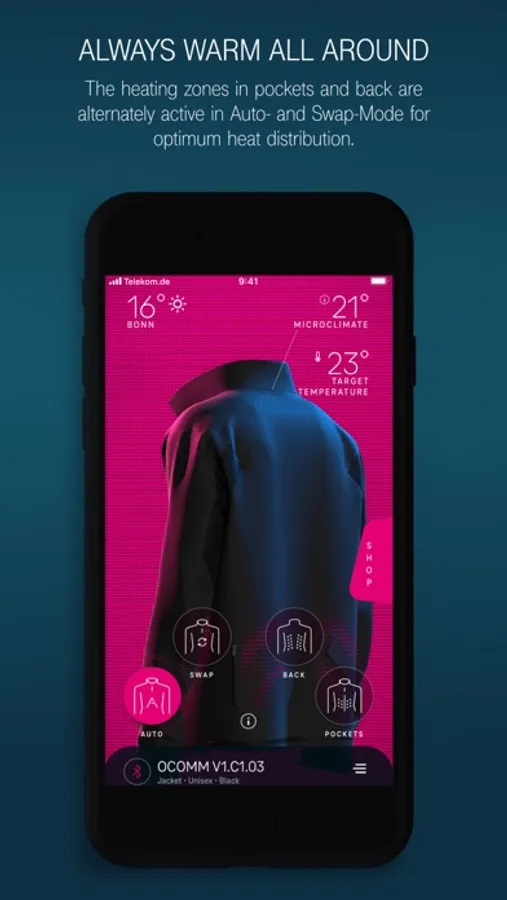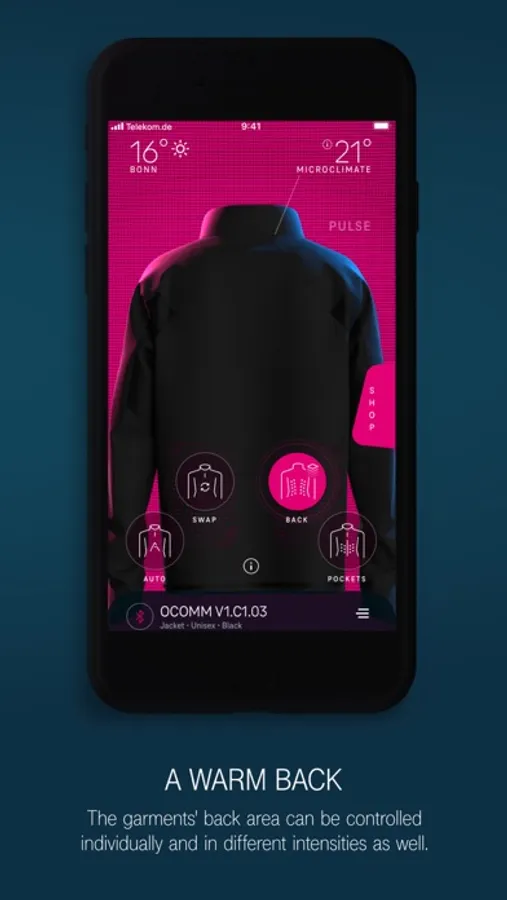 With the Heatable Capsule Collection app, you can conveniently control the heating functions of your smart clothing. Different heating modes allow you to perfectly adapt it to your needs - from heating individual zones to automatic heat regulation. This is how we take wearable tech to the next level and create the perfect solution for any weather at the touch of a button.