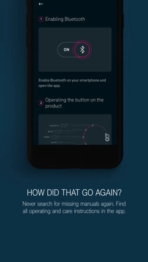 The app automatically adjusts to the features of your garment after pairing. Not all features are available for the first generation of the HCC collection.