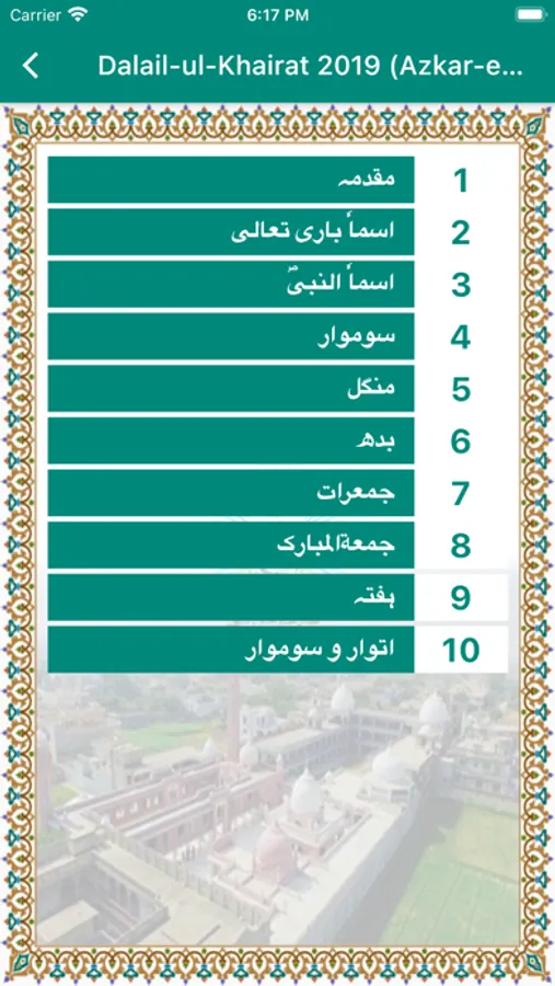 Dalail ul Khairat Sharif is a collection of salat on Muhammad (P.B.U.H) to read the daily lesson. All lessons are divided into days so you can read them accordingly.