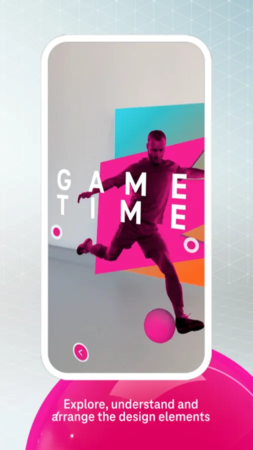 Choose between different topics such as Sport or Product and explore the new Liquid Design there. Rearrange the Magenta shapes or headlines, for example, exchange the photo motif and immerse yourself in the spatial elements of the design.